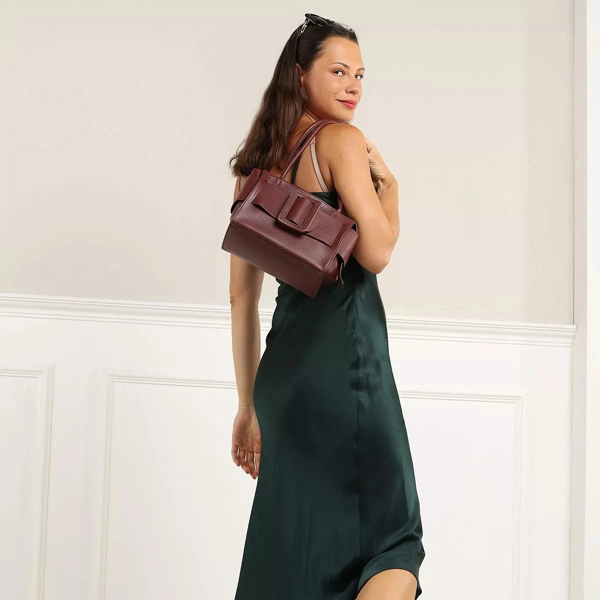 - Gleichmäßige Oberfläche gefertigt aus genarbtem Kalbsleder in Rot für einen hochwertigen Charakter