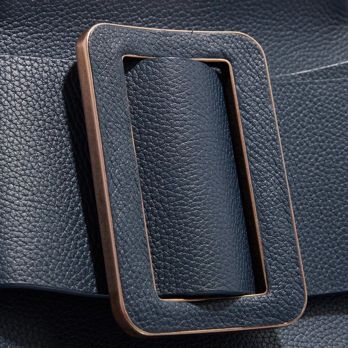 - Gleichmäßige Oberfläche gefertigt aus genarbtem Kalbsleder in Blau für einen hochwertigen Charakter