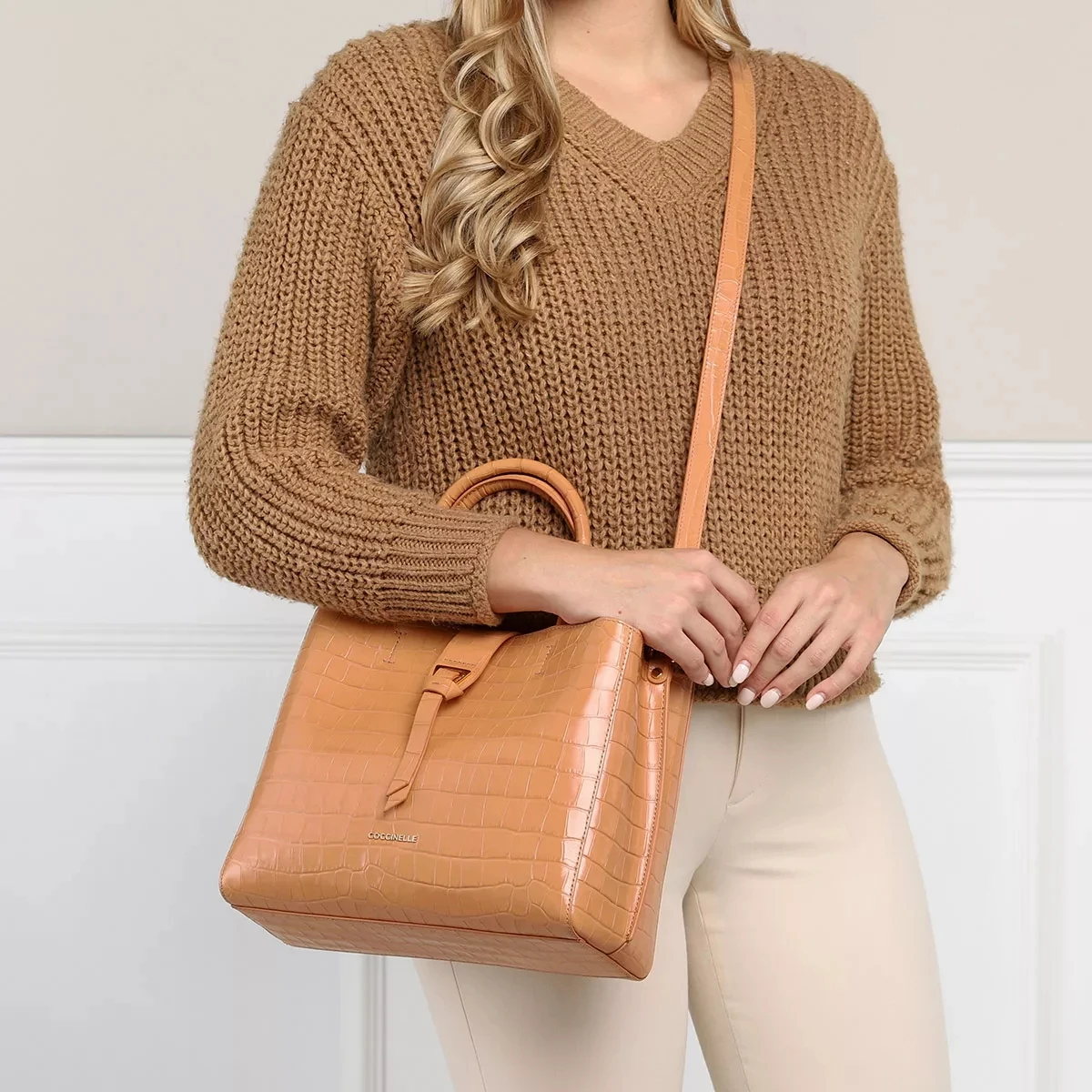 Die Alba Croco Shiny Soft Handbag Almond von COCCINELLE ist klassisch und bleibt daneben modern.