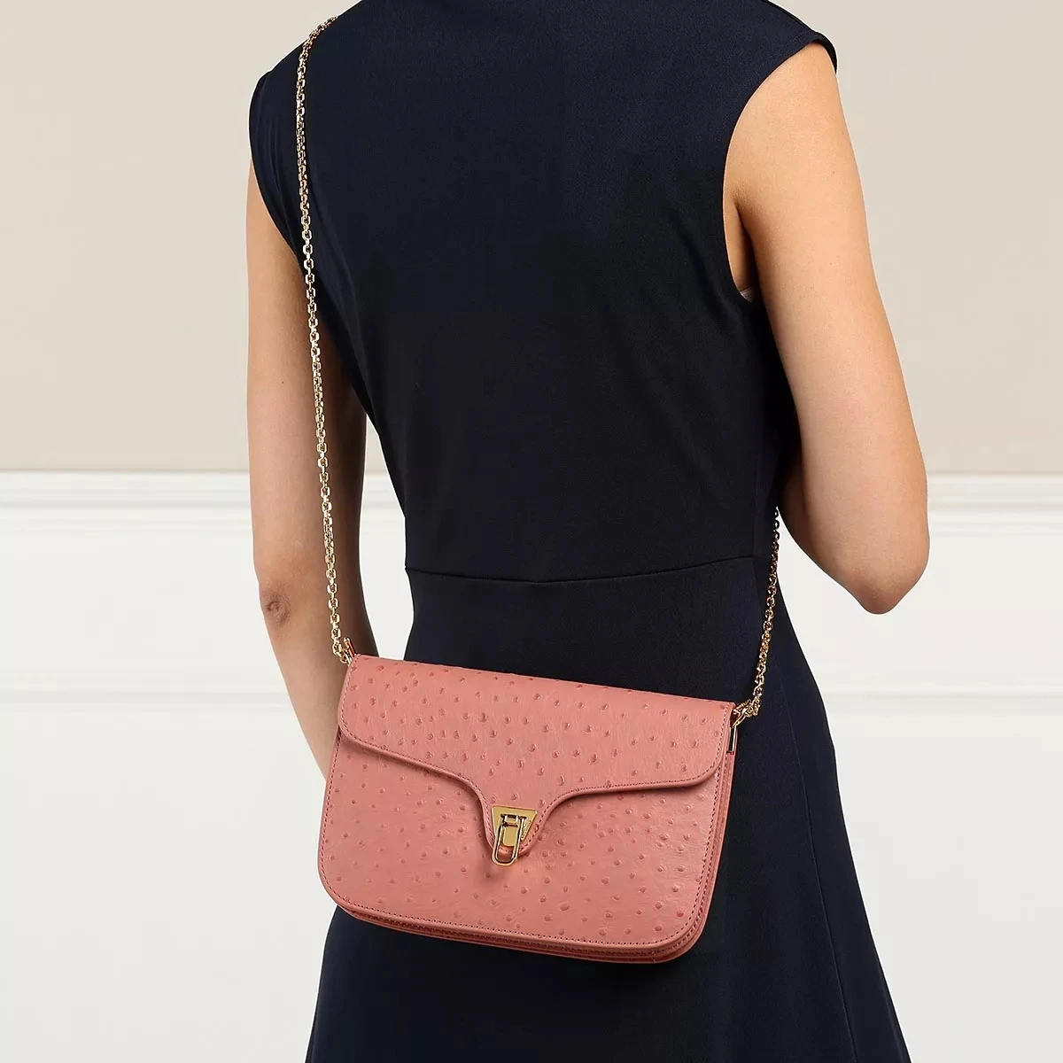 Als besonders detailreich und originell zeigt sich die vielseitige Crossbody Bag Coccinelle Beat Ostrich Handbags Camelia von COCCINELLE.