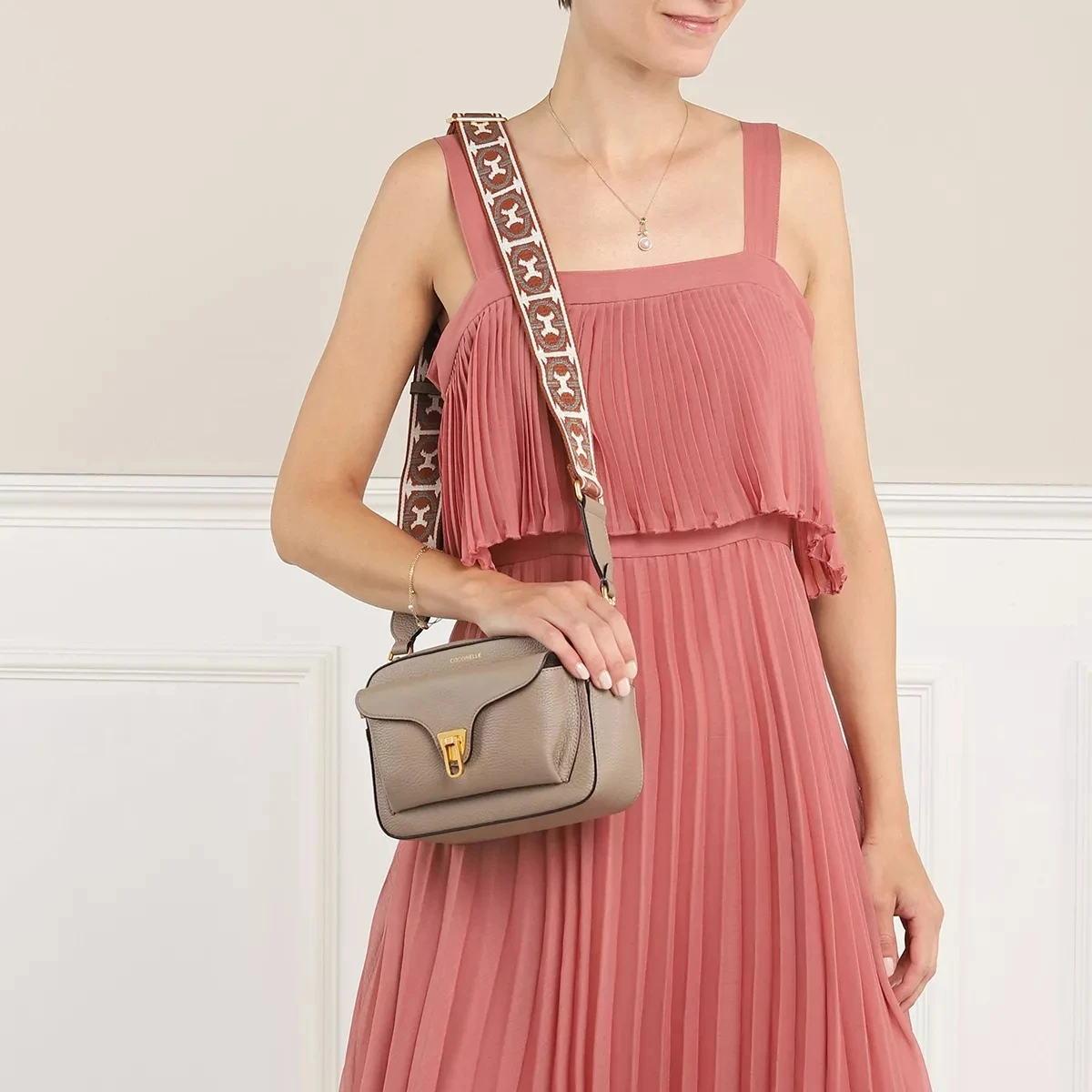 Feminin und romantisch – das ist die vielseitige Crossbody Bag Beat Soft Ribb Warm Taupe von COCCINELLE.