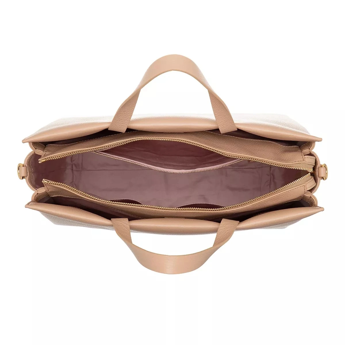 - Gefertigt aus genarbtem Leder in Beige