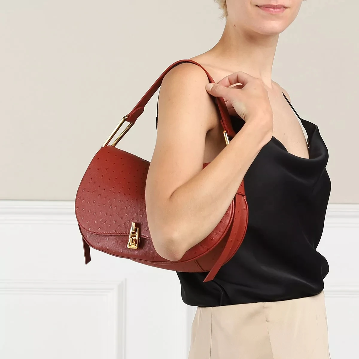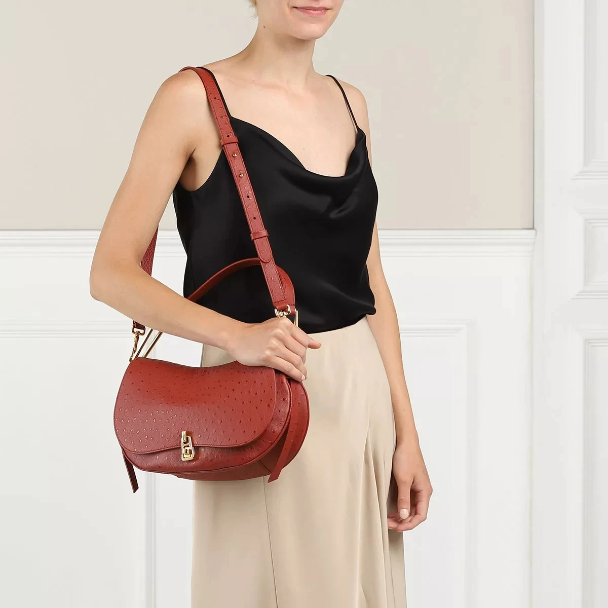 Die leicht handhabbare Saddle Bag Coccinellemagie Ostrich Handbags Acero von COCCINELLE vereint einen nostalgischen und detailverliebten Look.