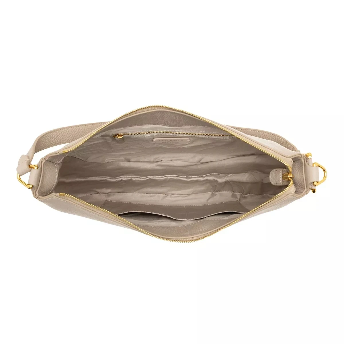 Die praktische Hobo Bag Priscilla Powder Pink von COCCINELLE vereint einen zeitlosen und lässigen Look. Das italienische Traditionslabel COCCINELLE begeistert seit 1978 durch ausgewählte und feinste Lederwaren. Das genarbte Leder in Beige verschaffen der Hobo Bag eine stabile Textur sowie einen relaxten Charakter. Goldfarbene Metalldetails vervollständigen das edle Aussehen der Hobo Bag. Der Tascheninhalt lässt sich unkompliziert und sicher in einem Hauptfach unterbringen. Für Ordnung und separaten Schutz sorgen drei praktische Zusatzfächer.