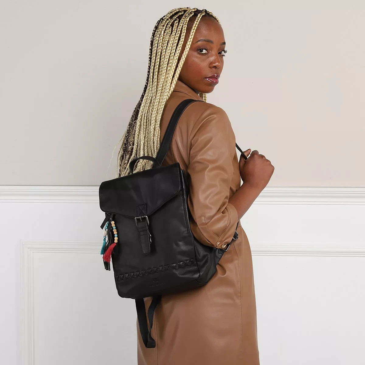 Der funktionale Rucksack Friendship Black vereint einen bohemianen und detail-bewussten Look.