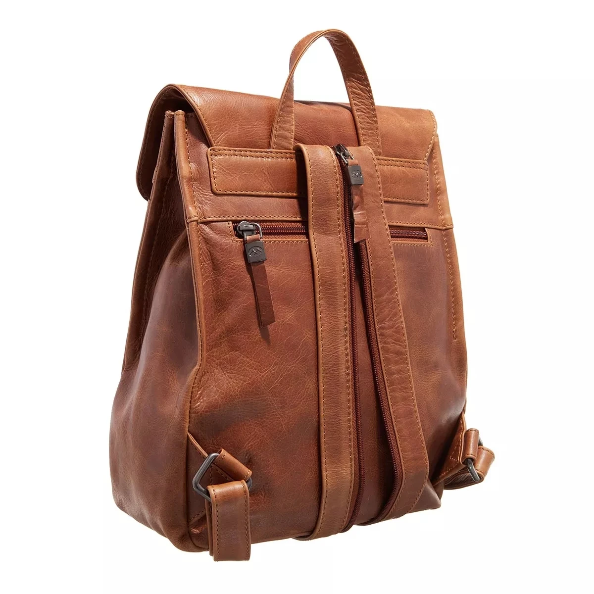 - Lässige Textur gefertigt aus Leder in Cognacbraun mit Vintage-Effekt für einen relaxten Charakter