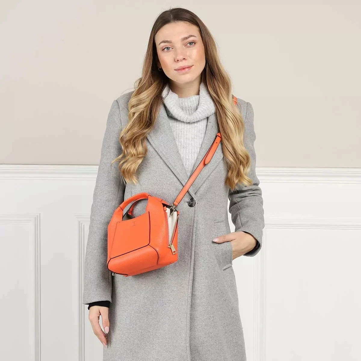 - Gleichmäßige Oberfläche gefertigt aus genarbtem Leder und Glattleder in Orange für einen relaxten Charakter