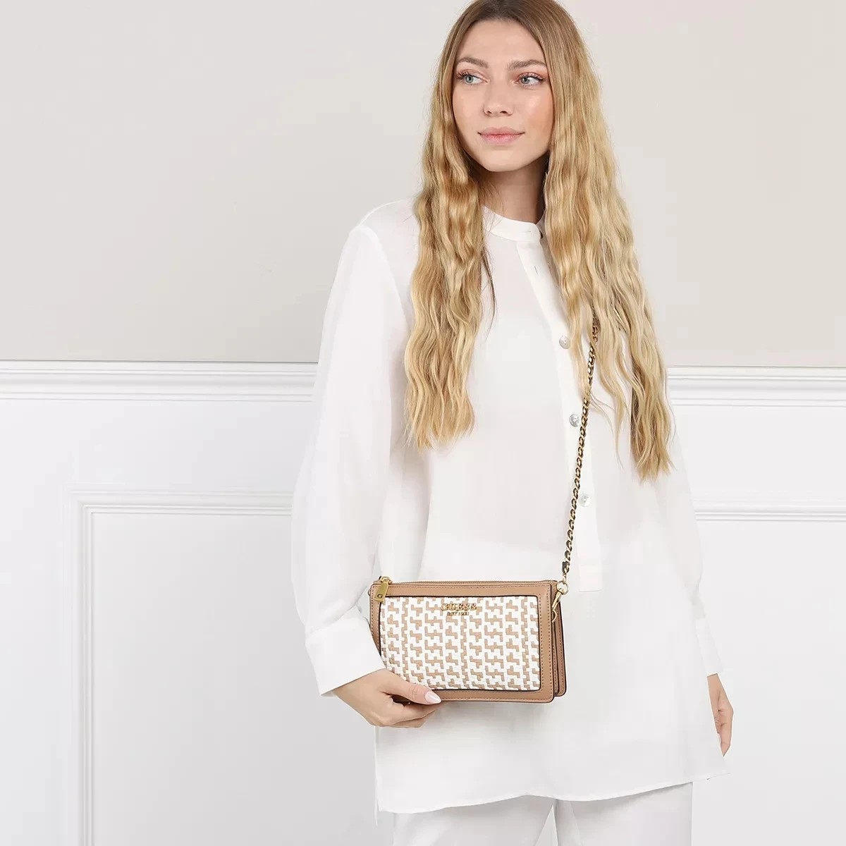 Vielseitig: Das ist die Crossbody Bag Abey Multi Compartment Crossbody Cognac/White von Guess.