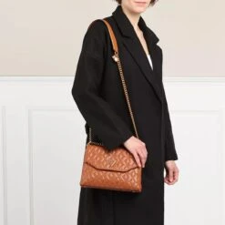 - Tascheninneres bestehend aus praktischem, beigem Textil mit Markenlogo