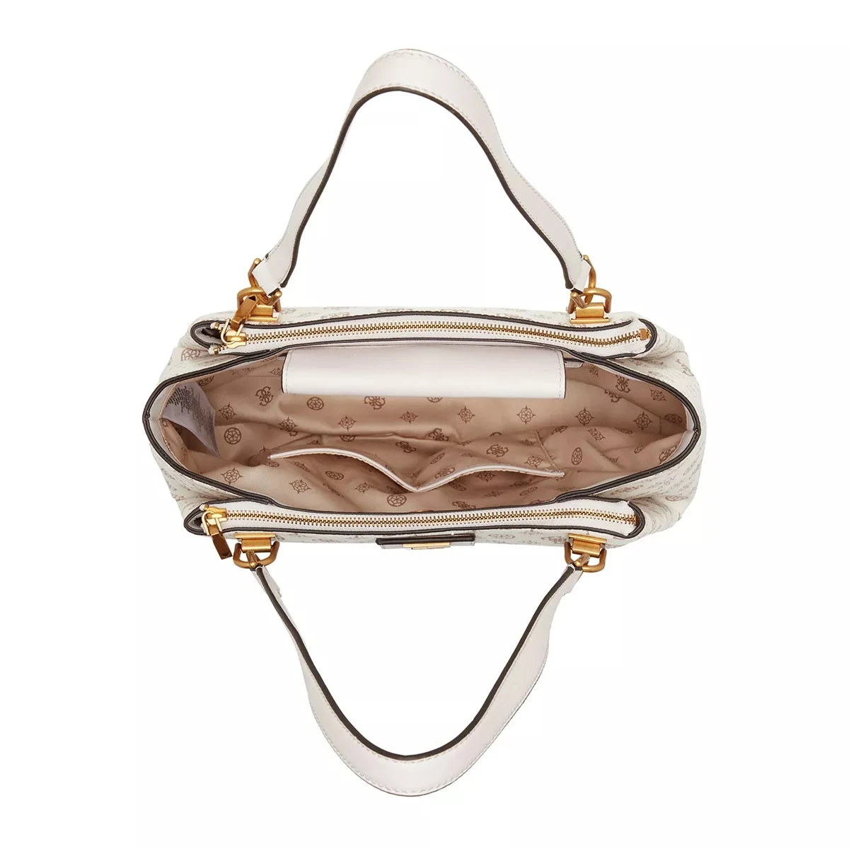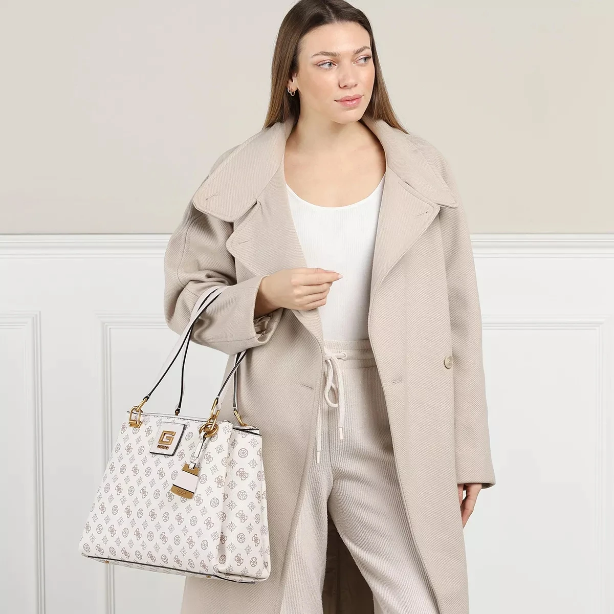Als besonders leicht handhabbar und praktisch zeigt sich der Shopper Alva Status Carryall Cream Logo von Guess.