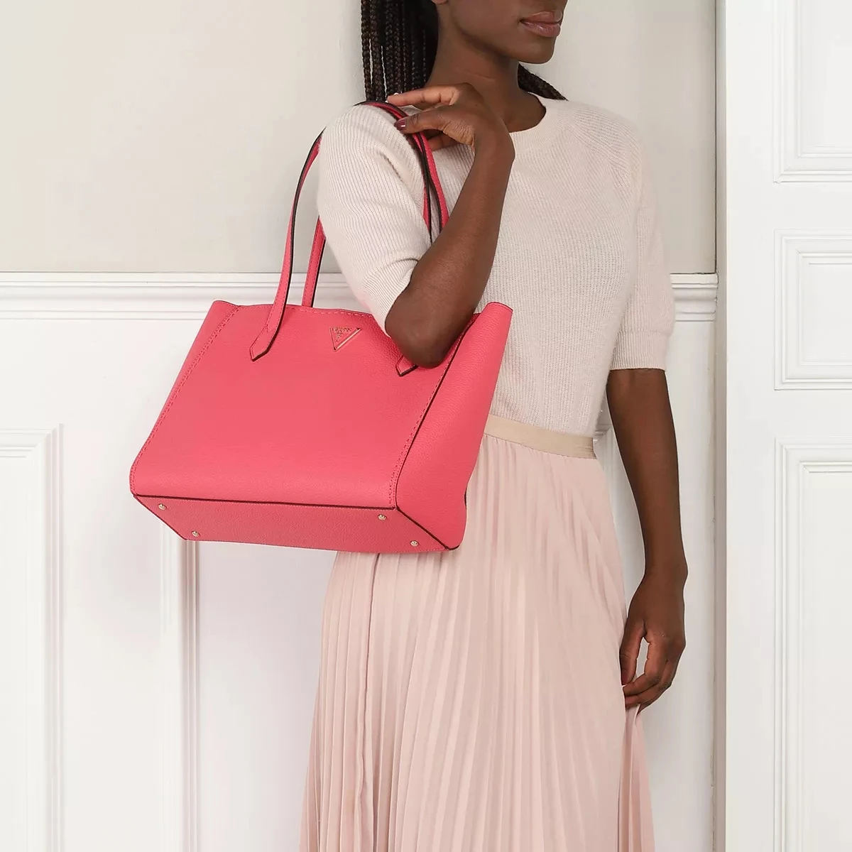 Der handliche Shopper Downtown Chic Turnlock Tote Camelia von Guess vereint einen entspannten und lässigen Look.