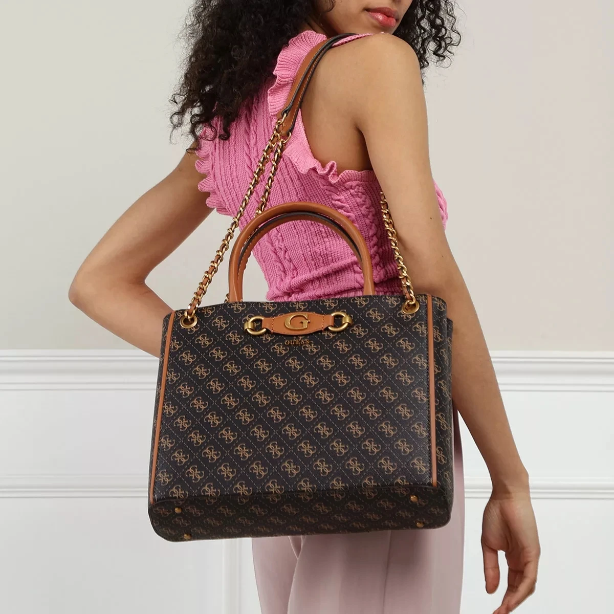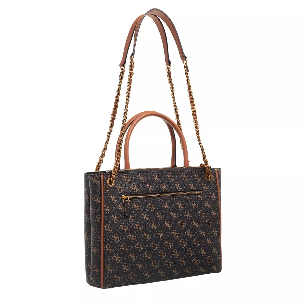Alltagstauglich und praktikabel: Das ist die Tote Bag Izzy High Society Carryall Brown Logo/Cognac von Guess.