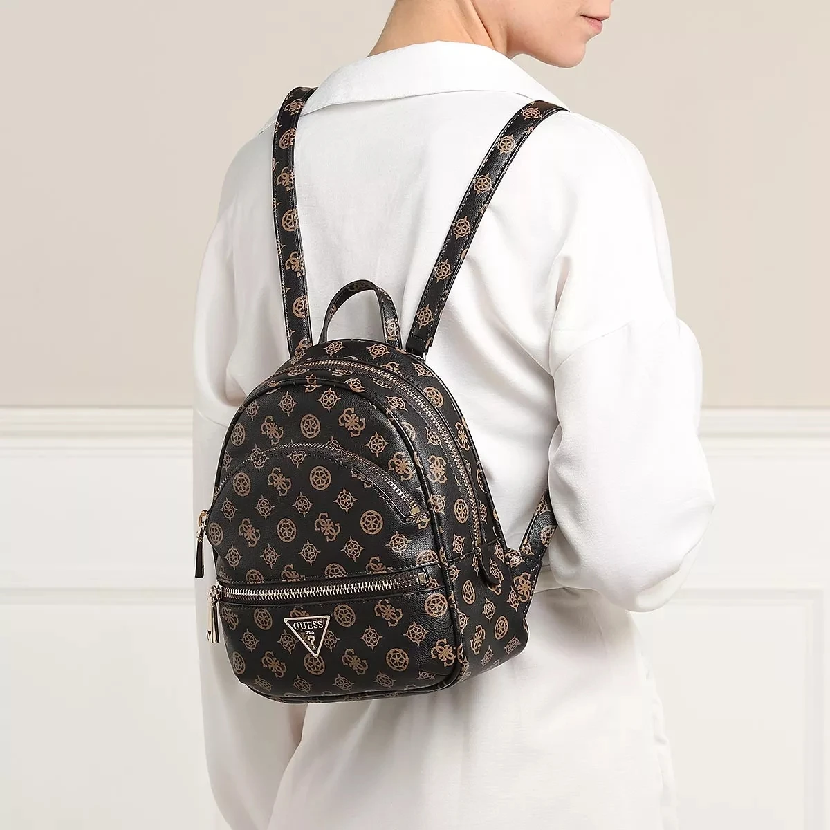 Der vielseitige Rucksack Manhattan Backpack Mocha Logo von Guess vereint einen legeren und lässigen Look.