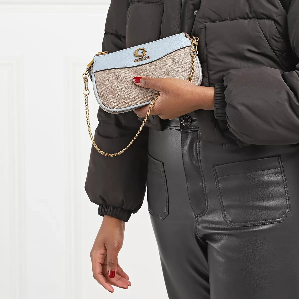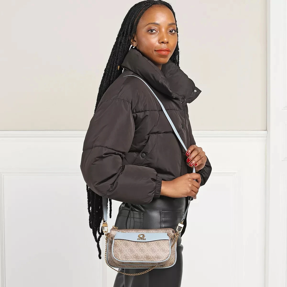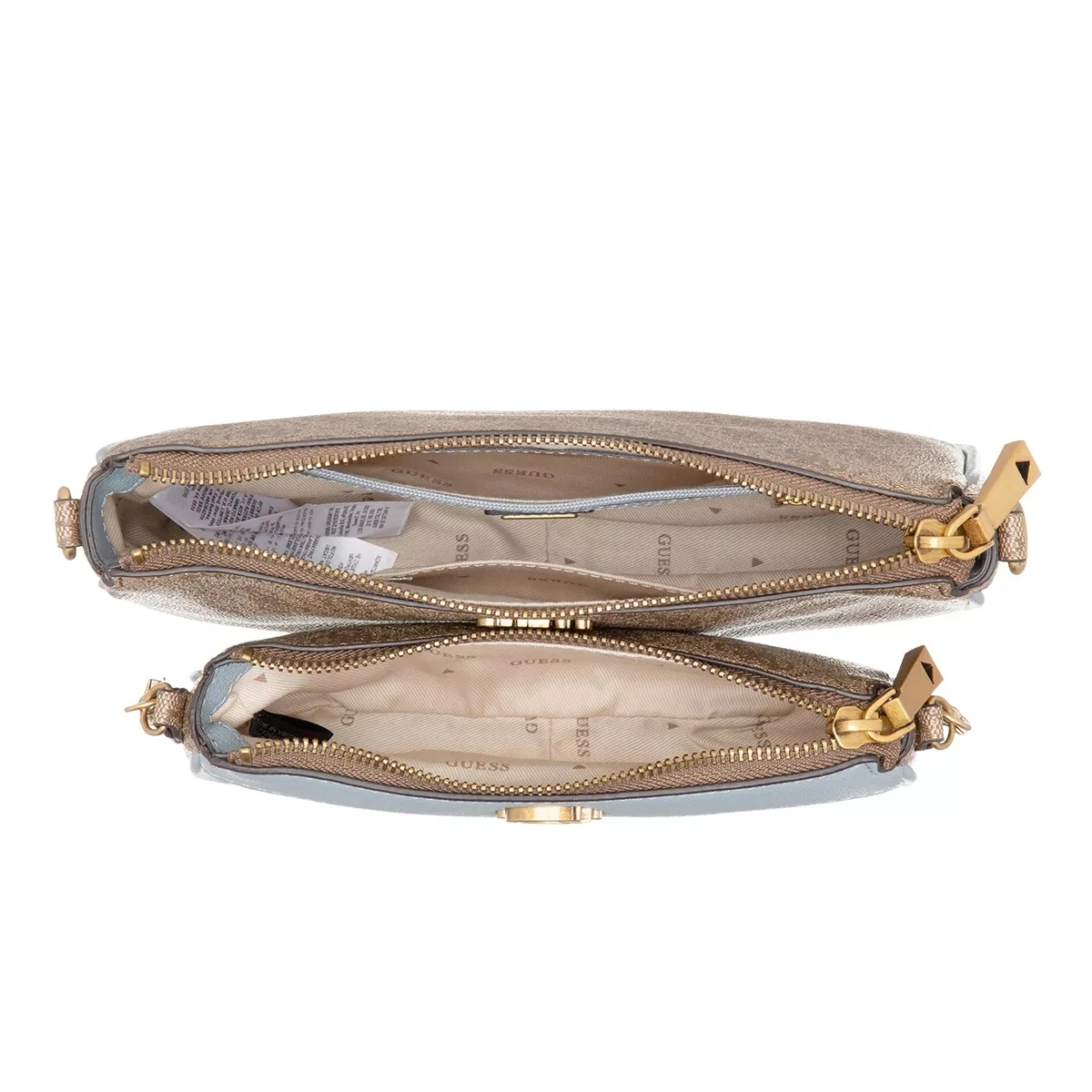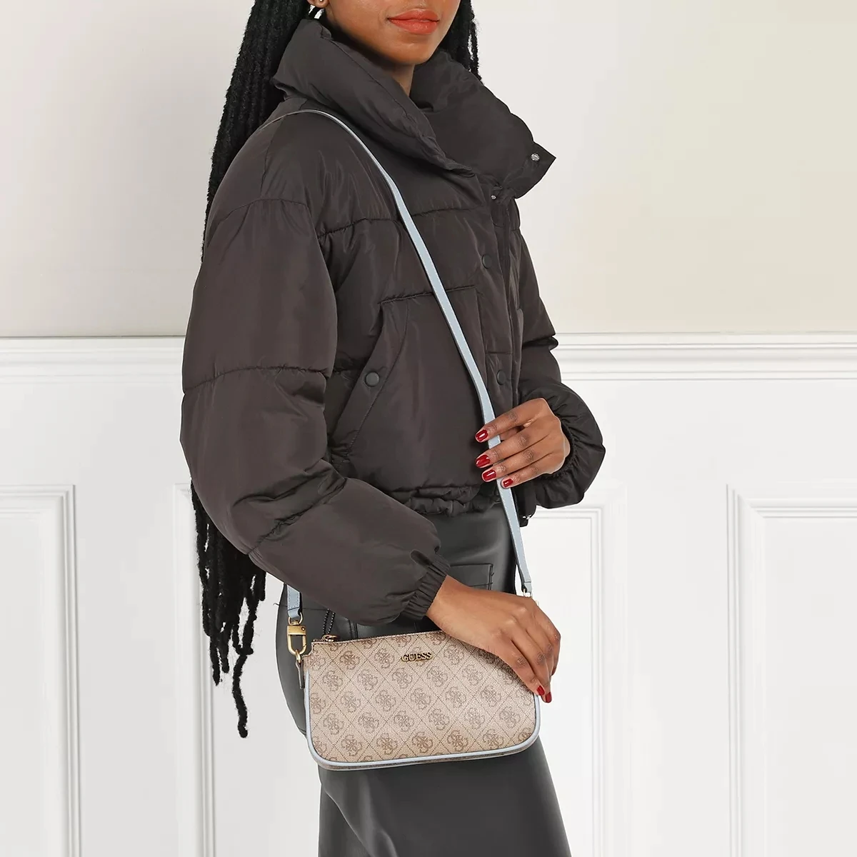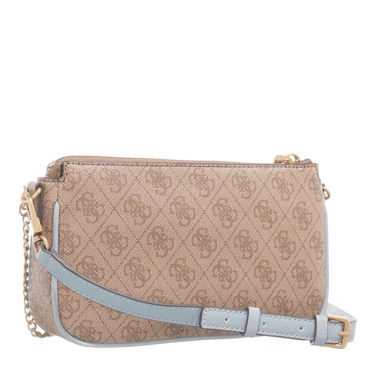 Die vielseitige Pochette Nell Logo Double Pouch Crossbody Latte Logo/Slate von Guess vereint einen entspannten und lockeren Look.