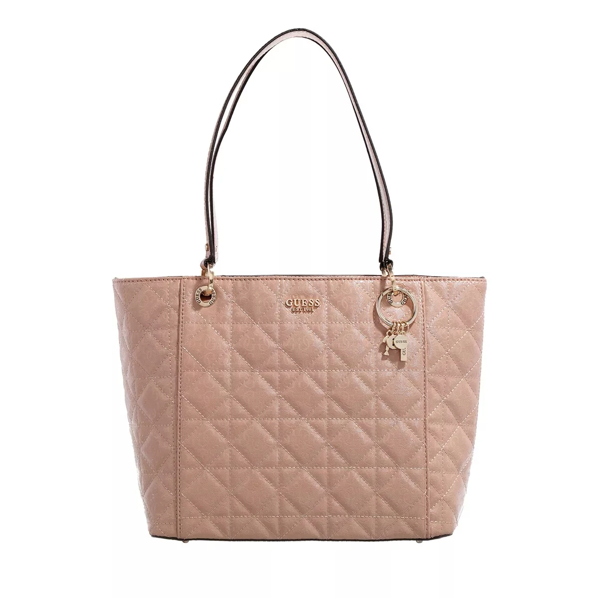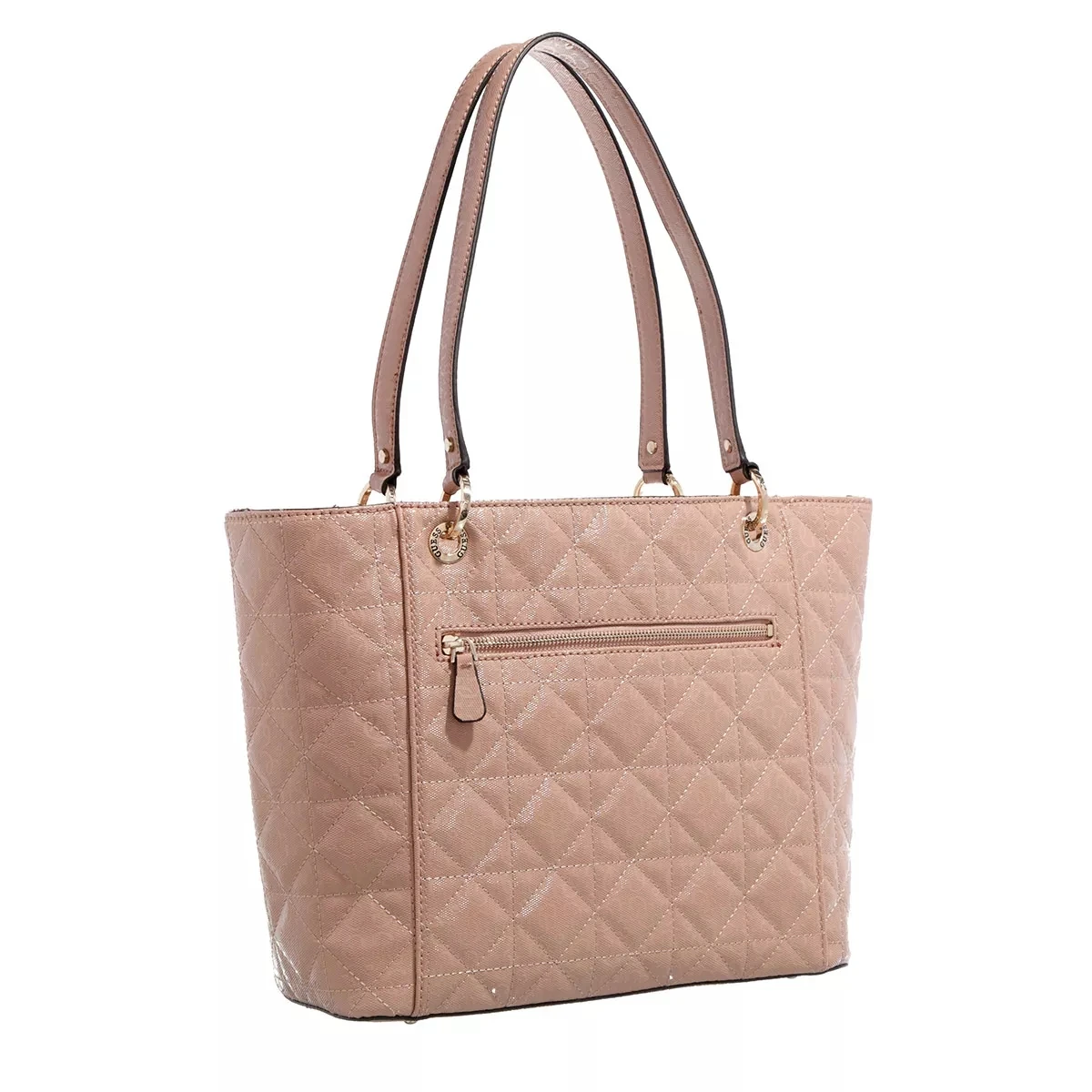 Die vielseitige Tote Bag Noelle Elite Tote Biscuit von Guess vereint einen nostalgischen und verspielten Look. Das amerikanische Lifestyle Label Guess kombiniert seit 1981 zeitlosen Hollywood Glanz mit französischem Chic in einem unverwechselbaren und lebendigen Stil. Sie besteht aus gestepptem Kunstleder in Rosa mit Print, welches ihr eine langlebige Textur verschafft. Dieses edle Aussehen der Tote Bag wird durch goldfarbene Metalldetails vervollständigt. Die Tasche überzeugt mit einem akzentuierten und eleganten Logo-Anhänger. In einem Hauptfach lassen sich Gegenstände unkompliziert und flexibel verstauen. Zudem sorgen vier praktische Zusatzfächer für Ordnung und separaten Schutz. Zwei Außenfächer ermöglichen einen schnellen Zugriff auf Kleinigkeiten, die im Alltag häufig genutzt werden.
