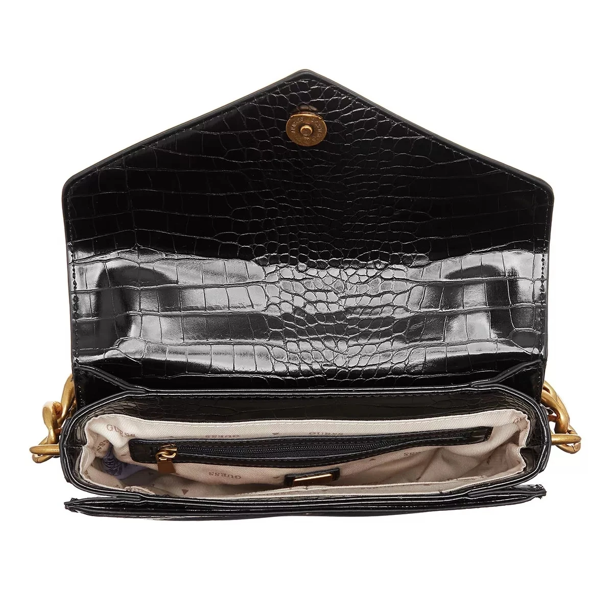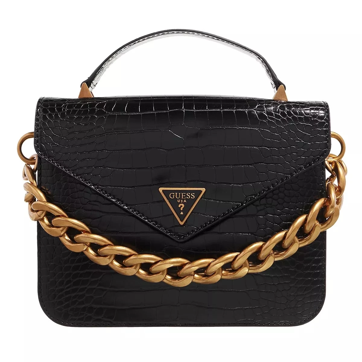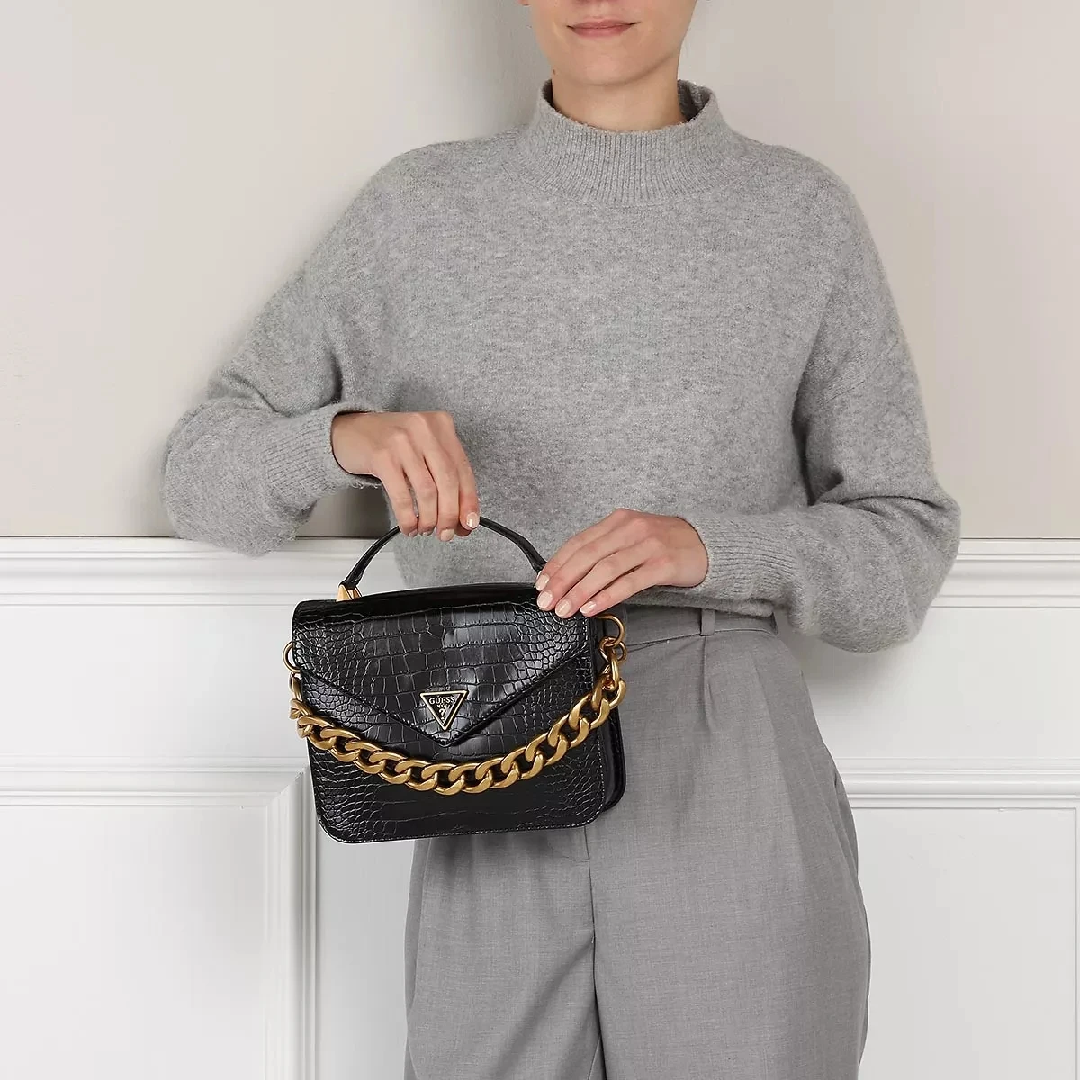 Die leicht handhabbare Satchel Retour Top Handle Flap Black von Guess vereint einen klassischen und rockigen Look.