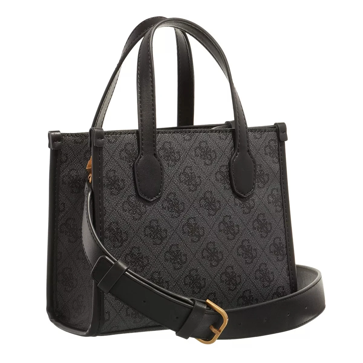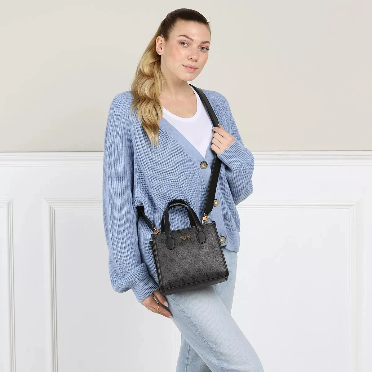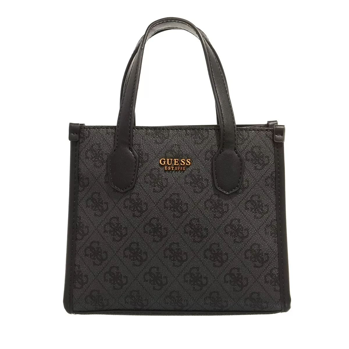 Die leicht handhabbare Minitasche Silvana Compartment Mini Tote Coal Logo von Guess vereint einen lockeren und legeren Look.