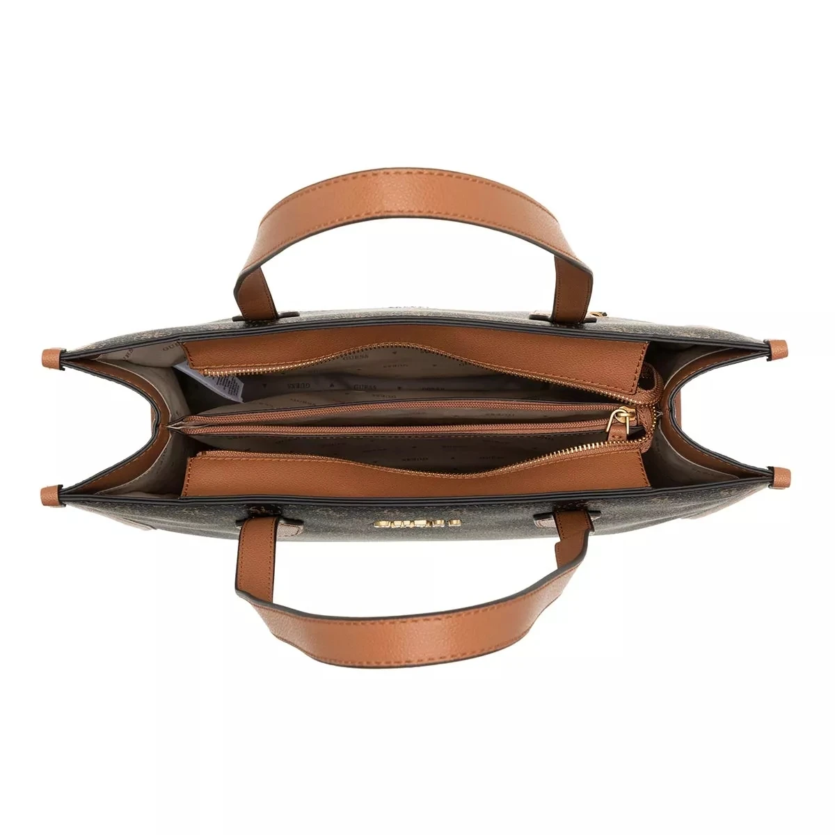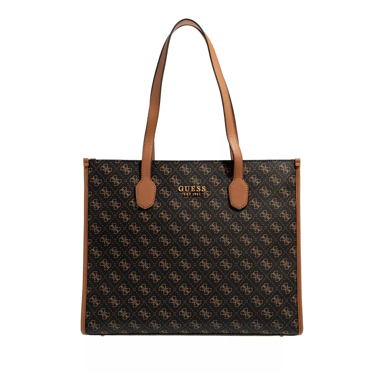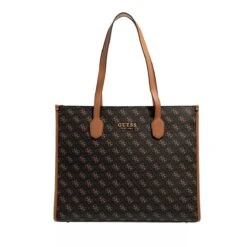 Hochwertig und minimalistisch: Das ist die funktionale Tote Bag Silvana Girlfriend Tote Brown Logo/Cognac von Guess.