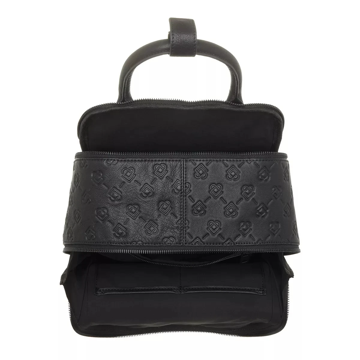 - Tascheninneres gefertigt aus praktischem, schwarzem Textil mit Designerlogo