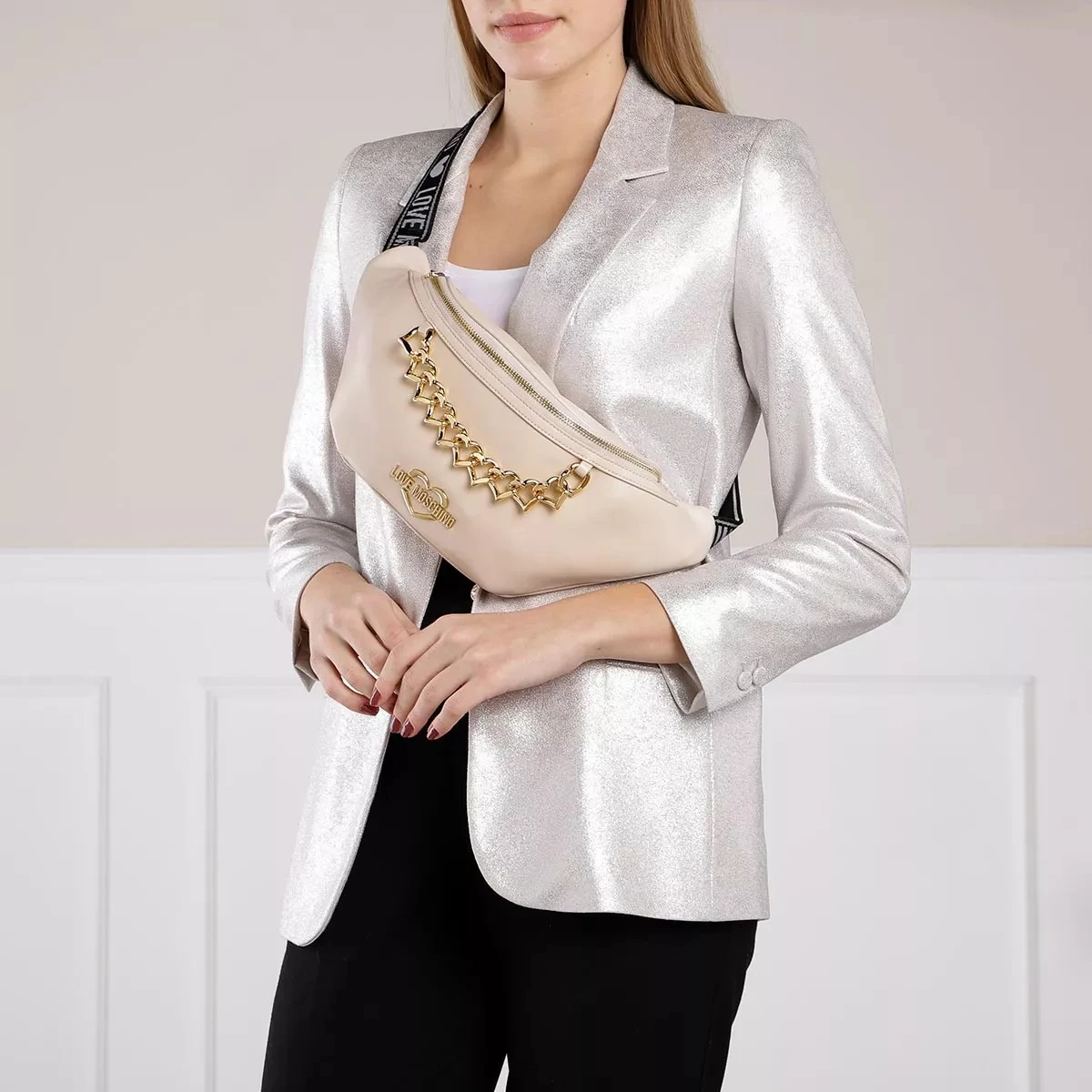 Die Borsa Pu Avorio von Love Moschino ist verspielt und bleibt daneben leicht handhabbar. Das cremefarbene Kunstleder verleiht der Crossbody Bag eine feine Oberfläche sowie einen unempfindlichen Charakter. Dieses angesagte und auffällige Aussehen der Crossbody Bag wird durch goldfarbene Metalldetails und dekorative Ketten vollendet. In einem Hauptfach lassen sich Gegenstände flexibel und unkompliziert unterbringen. Außerdem sorgt ein praktisches Zusatzfach für Struktur und separaten Schutz.