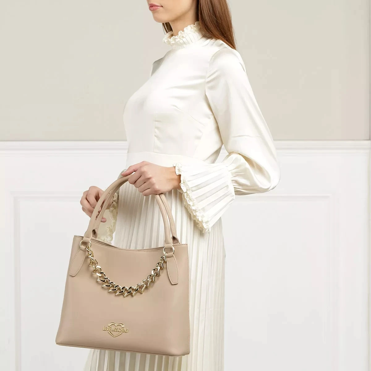 Die funktionale Tote Bag Borsa Pu Nude von Love Moschino vereint einen verspielten und detailreichen Look.