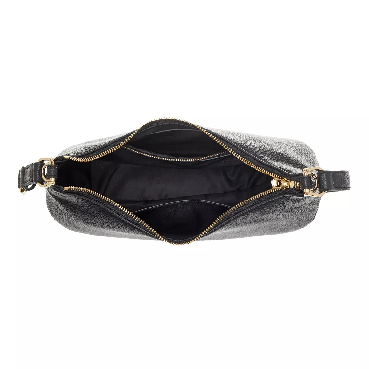 - Tascheninneres bestehend aus weichem, schwarzem Textil mit Designerlogo