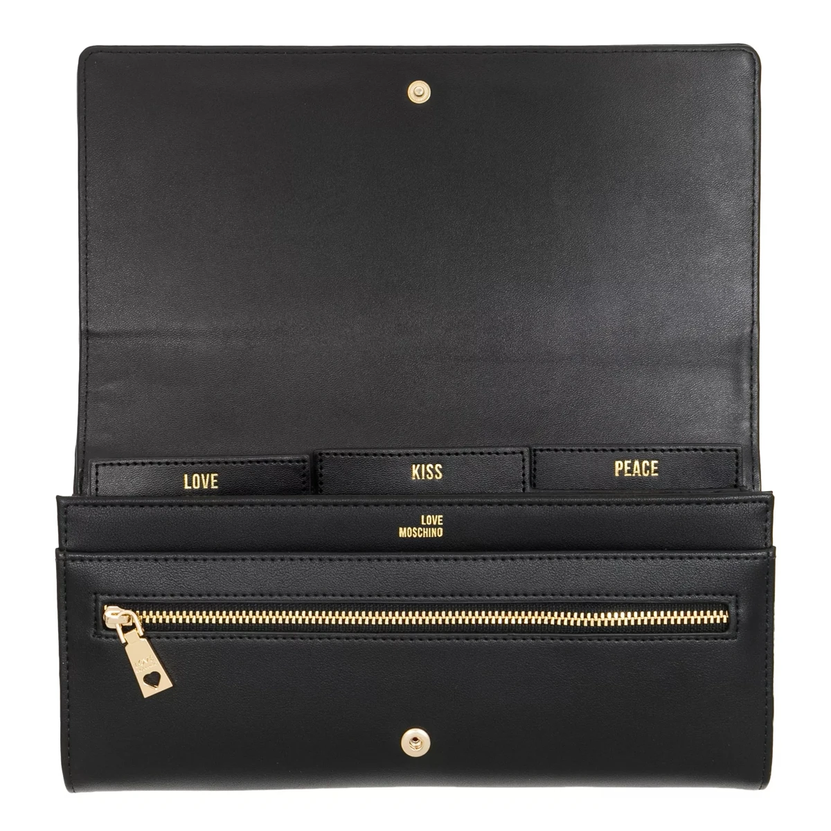 Die handliche Clutch Portafogli Pu Nero von Love Moschino vereint einen schlichten und schicken Look.