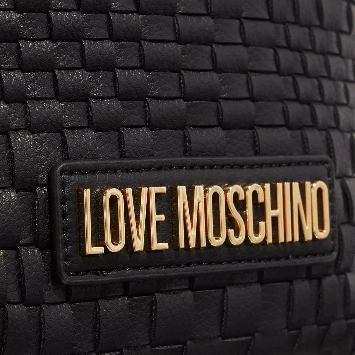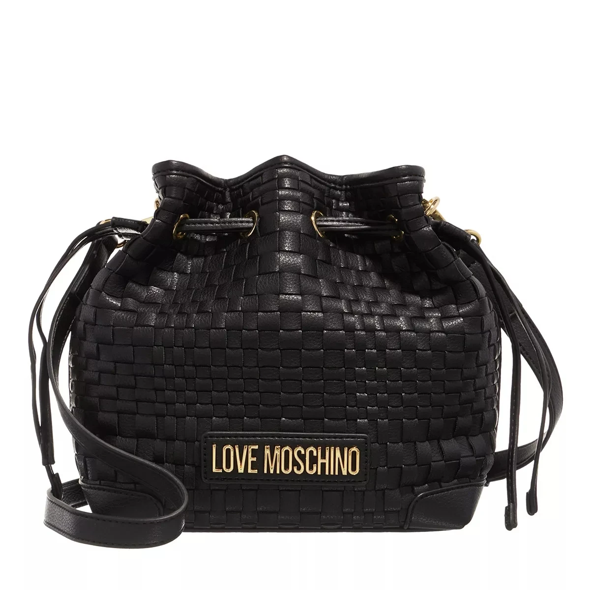 Als besonders feminin und detail-bewusst zeigt sich die praktische Beuteltasche Woven Nero von Love Moschino.