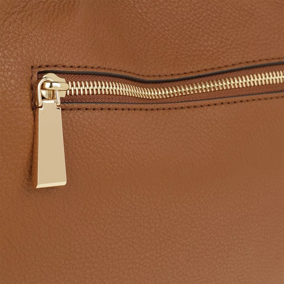 - Gefertigt aus genarbtem Leder in Cognacbraun