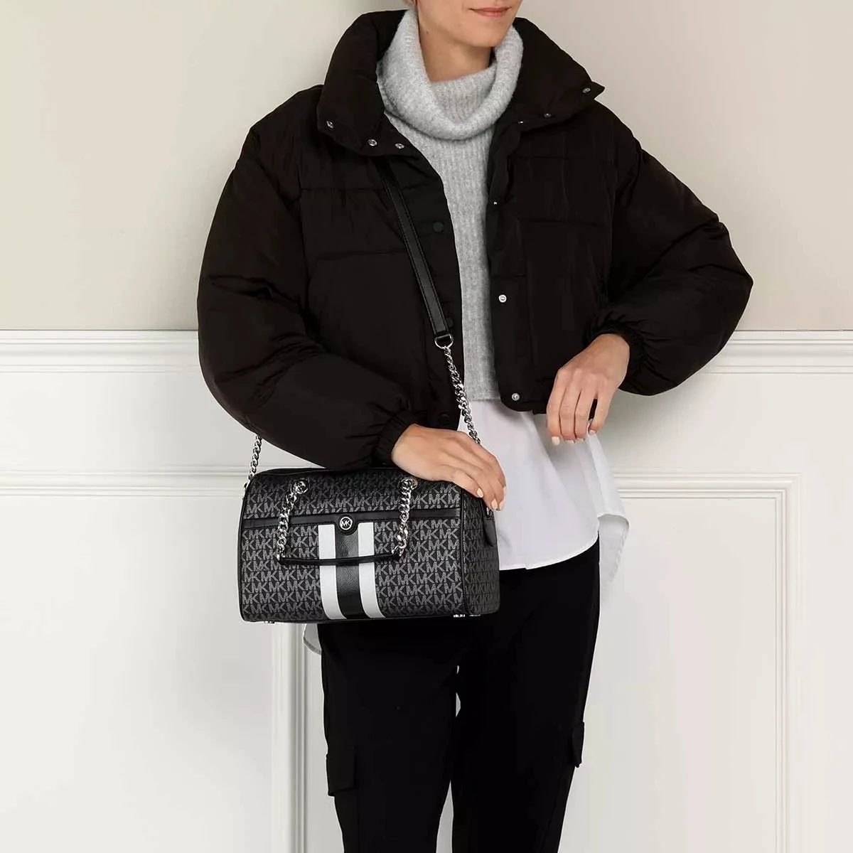 Die leicht handhabbare Satchel Medium Duffle Satchel Blk Silver von Michael Kors vereint einen extravaganten und auffälligen Look.