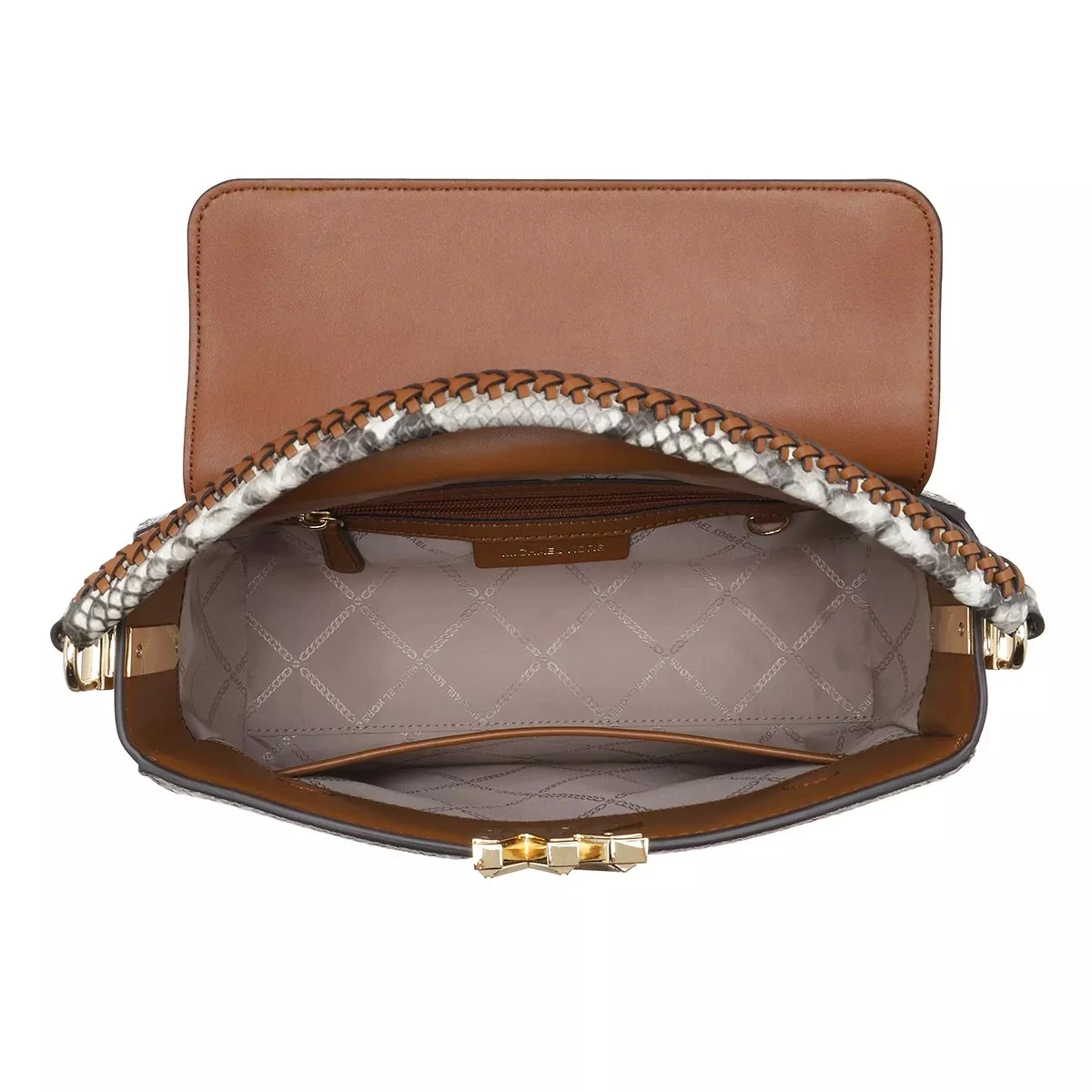 Die vielseitige Satchel Medium Satchel Luggage von Michael Kors vereint einen extravaganten und schlichten Look.