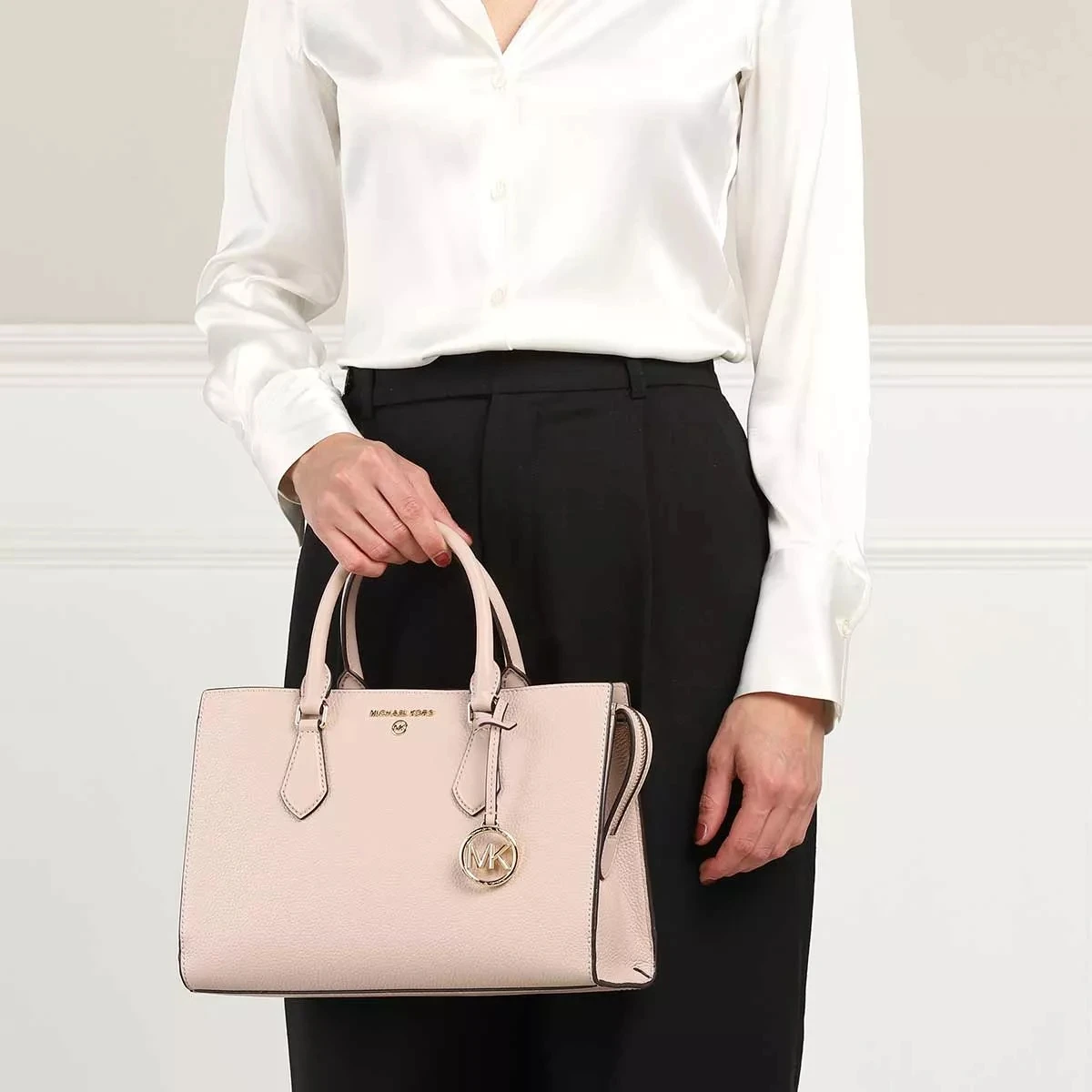 Die Pebble Soft Pink von Michael Kors ist hochwertig und bleibt zugleich praktisch. Bestehend aus genarbtem Leder in Rosa ist die Tote Bag ein luxuriöses Accessoire mit langlebiger Oberfläche. Dieses stilvolle Aussehen der Tote Bag wird durch goldfarbene Metalldetails vervollständigt. Die Tasche überzeugt mit einem eleganten und akzentuierten Logo-Anhänger. Flexibel und sicher lassen sich Gegenstände in einem Hauptfach verstauen und können zudem in drei praktischen Zusatzfächern ordentlich und separat transportiert werden. Für Kleinigkeiten, die im Alltag regelmäßig genutzt werden, sind die zwei Außenfächer ideal geeignet, weil sie einen schnellen Zugriff ermöglichen.