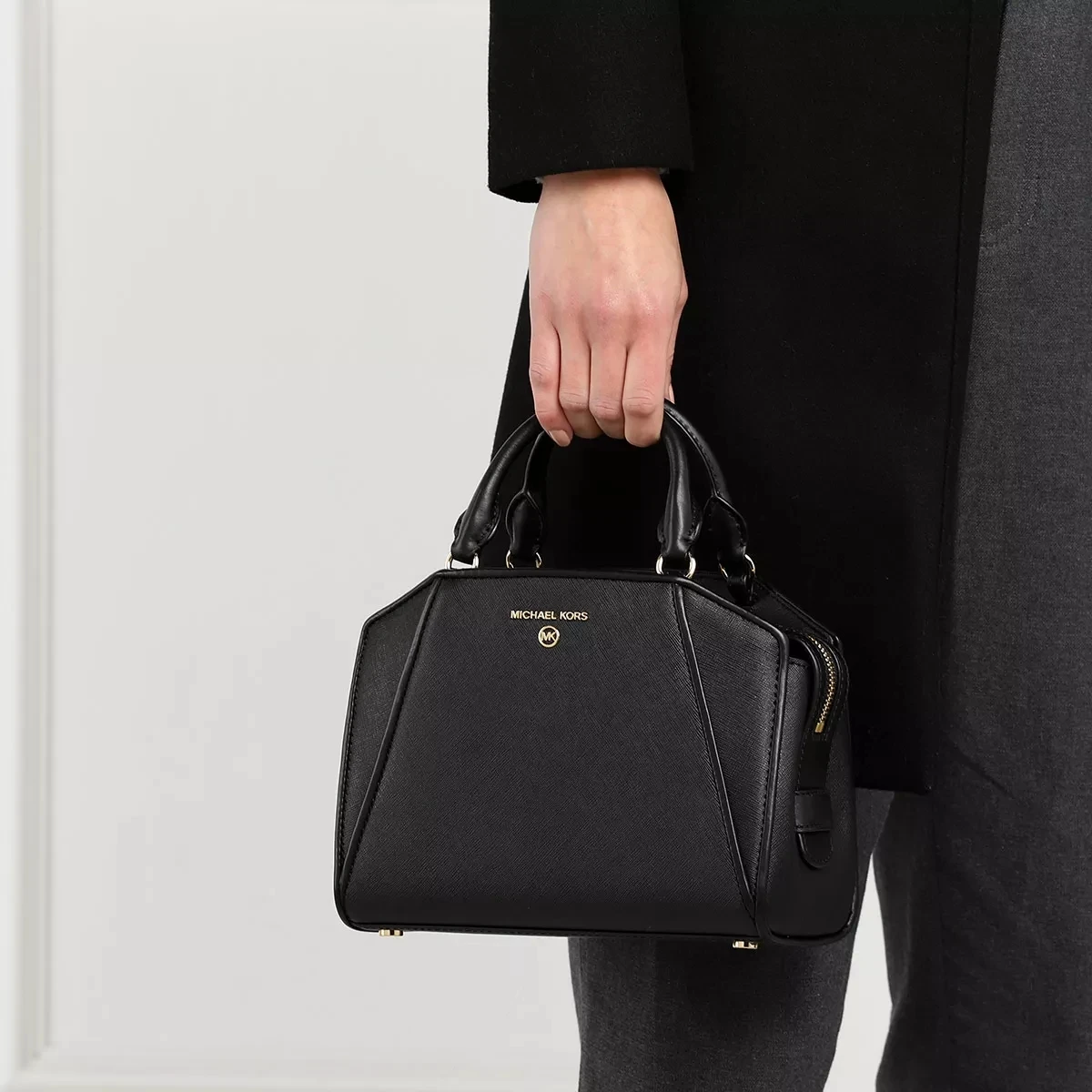 Als besonders entspannt und lässig zeigt sich die handliche Bowling Bag Small Satchel Black von Michael Kors.