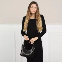 - Tascheninneres bestehend aus praktischem, schwarzem Textil mit Markenlogo