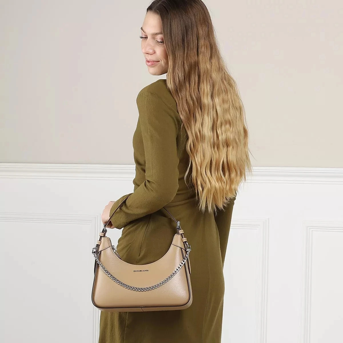 - Zwei Henkel aus einer edlen Metallkette für bessere Stabilität während des Tragens (ca. 39 cm)