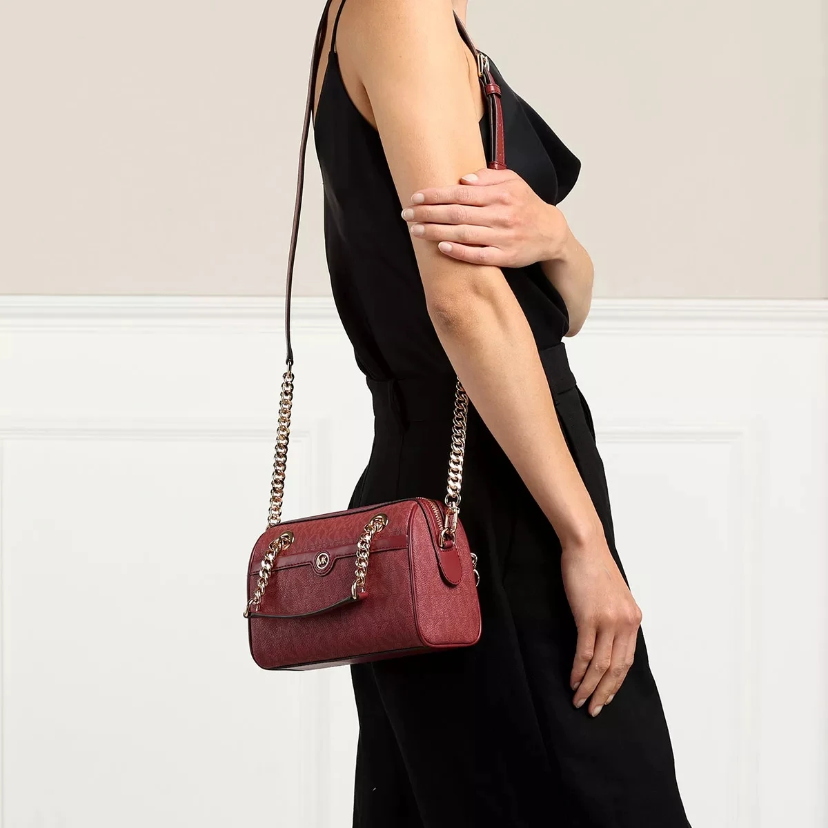 Als besonders individuell und nostalgisch zeigt sich die leicht handhabbare Duffle Bag Xs Duffle Xbody Brandy von Michael Kors.