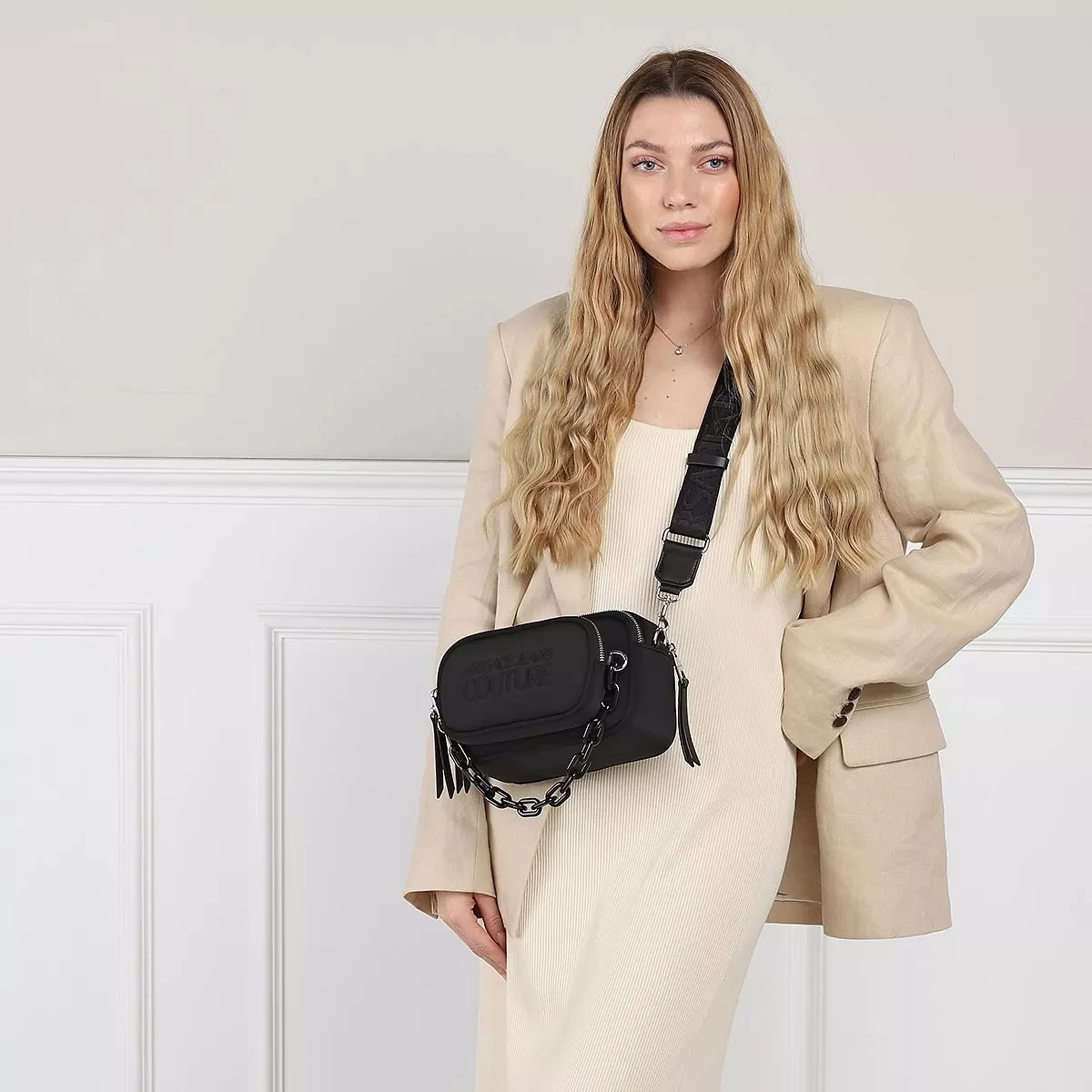 - Ein abnehm- und verstellbarer Schulterriemen aus weichem Textil für einen einfachen Griff sowie praktische und individuelle Tragekombinationen (ca. 83 cm bis 140 cm)